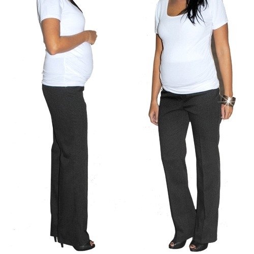 Kalhoty mají těhotenský pás, který se přizpůsobí rostoucímu bříšku.