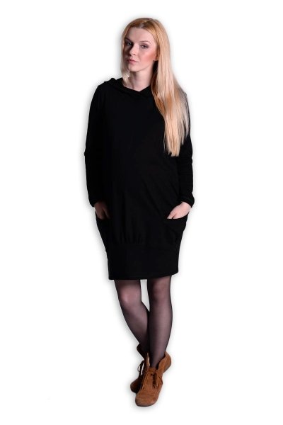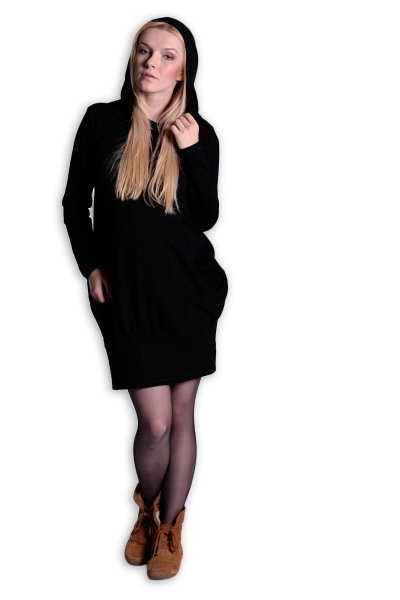 Sportovní těhotenské teplákové šaty s kapucí.