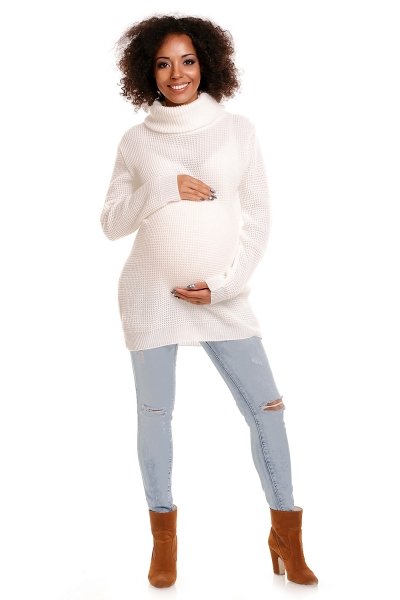 Elegantní svetřík nejen pro těhotné s volým roláčkem.