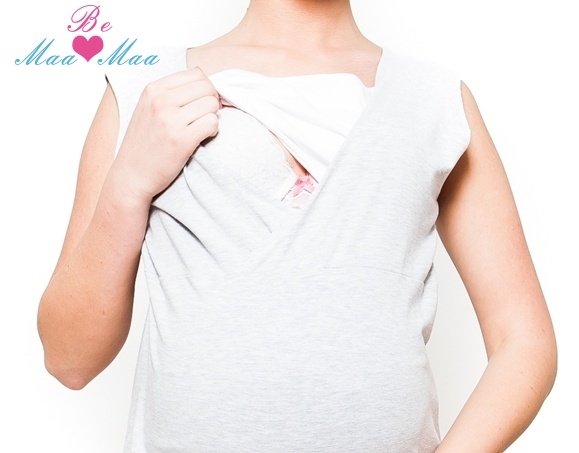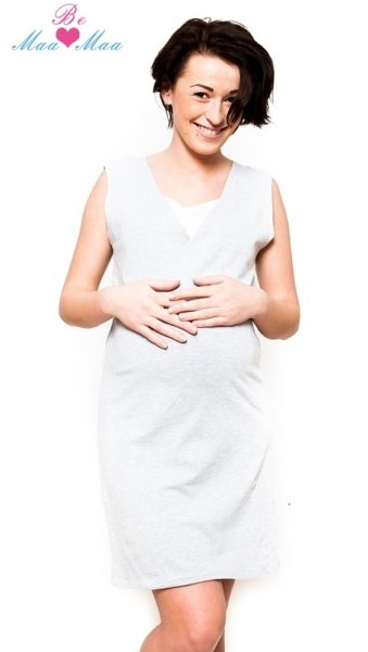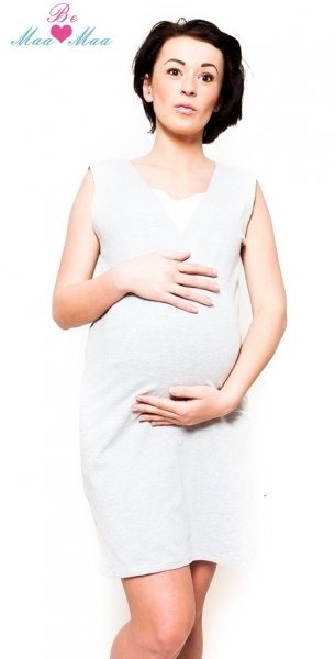 Be MaaMaa Těhotenská, kojící noční košile Iris - sv.šedá, B19