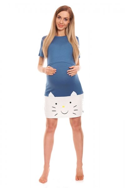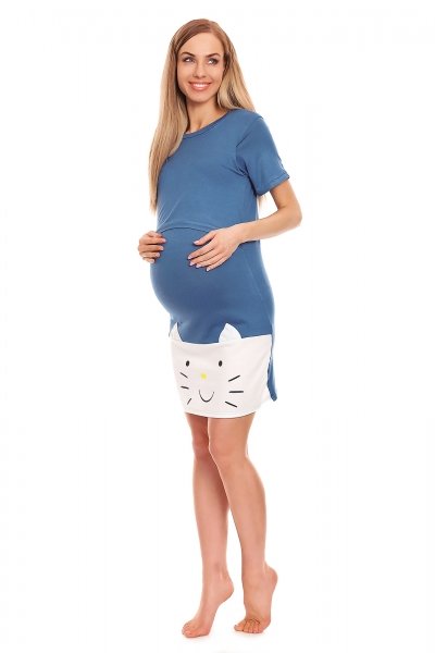 Be MaaMaa Těhotenská, kojící noční košile s motivem kočky, kr. rukáv