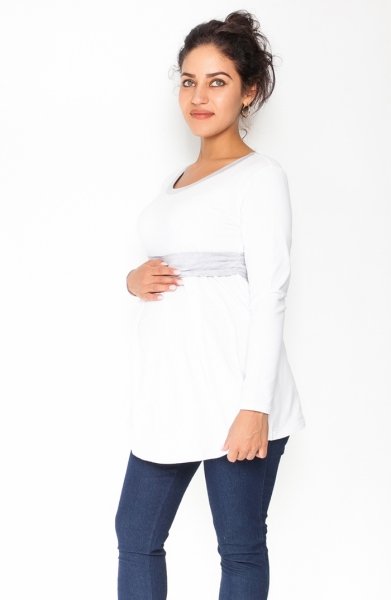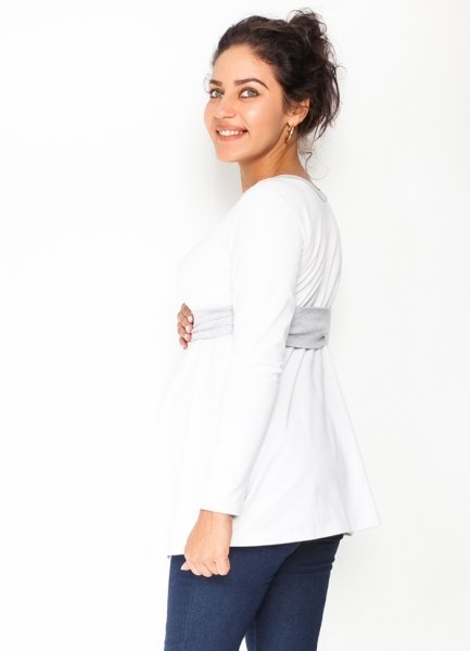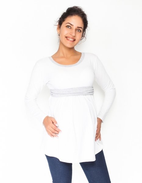 Be MaaMaa Těhotenská tunika s páskem, dlouhý rukáv Amina - bílá/pásek