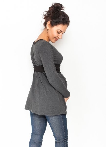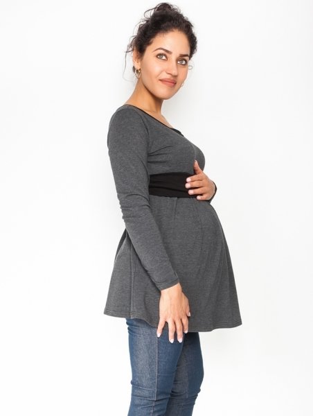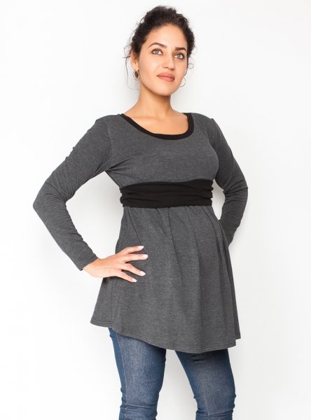 Be MaaMaa Těhotenská tunika s páskem, dlouhý rukáv Amina - grafit/pásek
