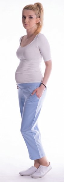 Be MaaMaa Těhotenské 7/8 bederní kalhoty - světle modré