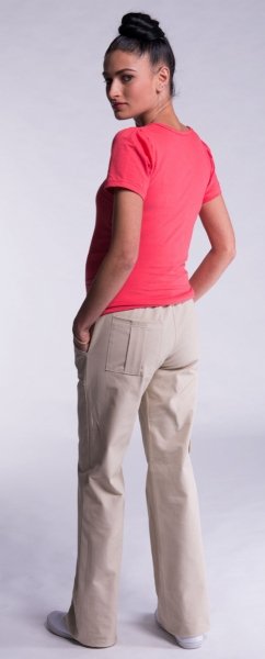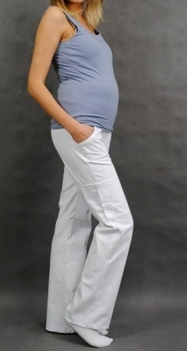 Kalhoty mají těhotenský pás, který se přizpůsobí rostoucímu bříšku.