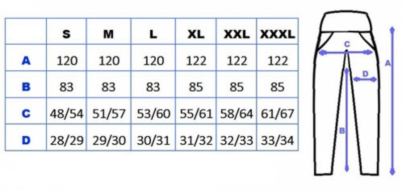 Kalhoty mají kapsy - v předu dvě, v zadu jednu a boční na nohavici.
