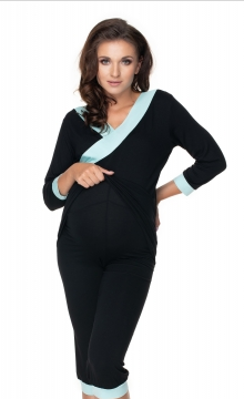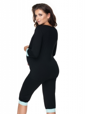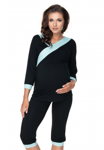 Be MaaMaa Těhotenské, kojící pyžamo 3/4 - černé, zelené