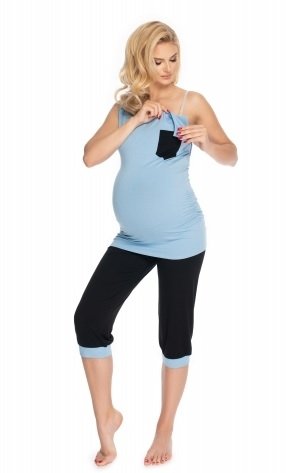 Be MaaMaa Těhotenské, kojící pyžamo 3/4 - modré