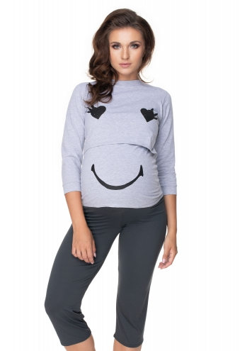 Těhotenské pyžamo 3/4 s dlouhým rukávem, která je přizpůsobené i pro kojení Be MaaMaa .