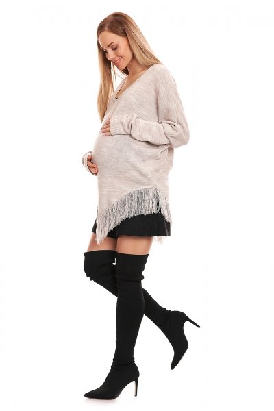 Be MaaMaa Těhotenské pončo dlouhý rukáv - béžové - UNI