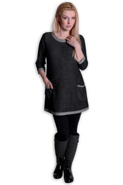 Be MaaMaa Těhotenské šaty Danny 3/4 rukáv - šedá/grafit