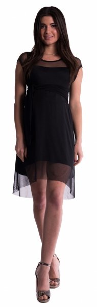 Be MaaMaa Těhotenské šaty se šifonovým přehozem - černé