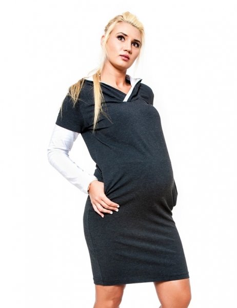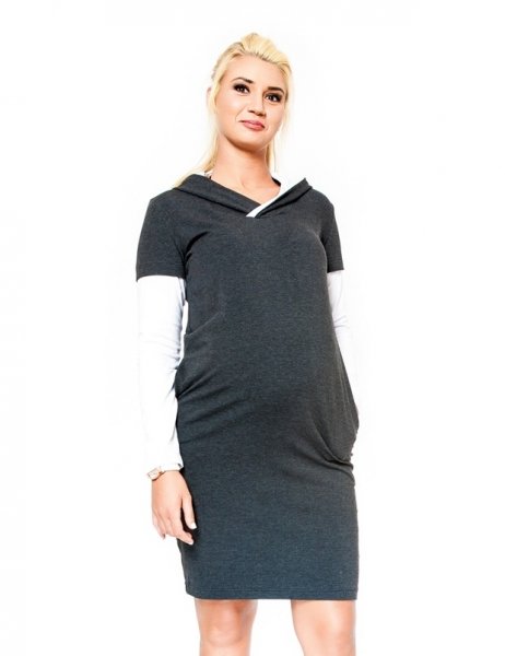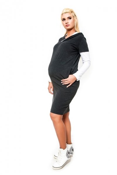 Be MaaMaa Těhotenské šaty/tunika s kapucí RIA - grafit