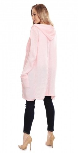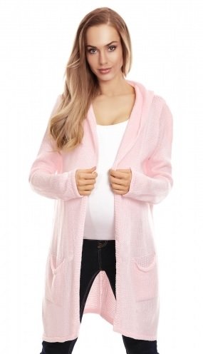 Dlouhý těhotenský kardigan s kapucí a dvěmi kapsami.