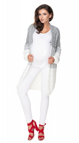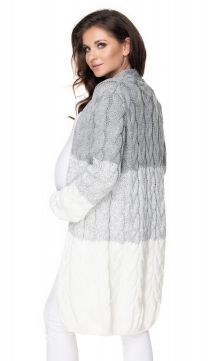 Be MaaMaa Těhotenský kardigan/svetr - šedý/krémový, copánkový vzor - UNI