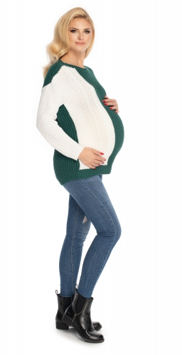 Be MaaMaa Těhotenský svetr, pletený vzor - zelená/bílá - UNI