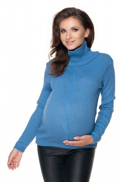 Be MaaMaa Těhotenský svetr s rolákem - modrý - S/M