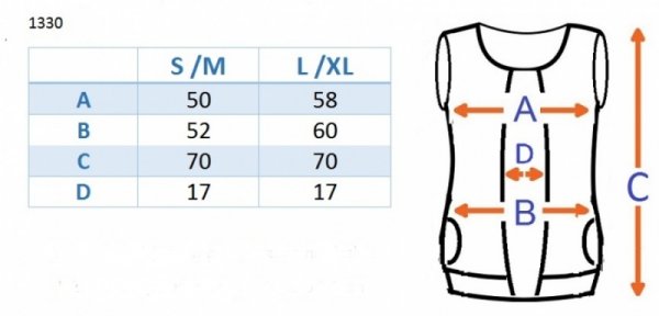 Vestu nabízíme ve 2 velikostech: