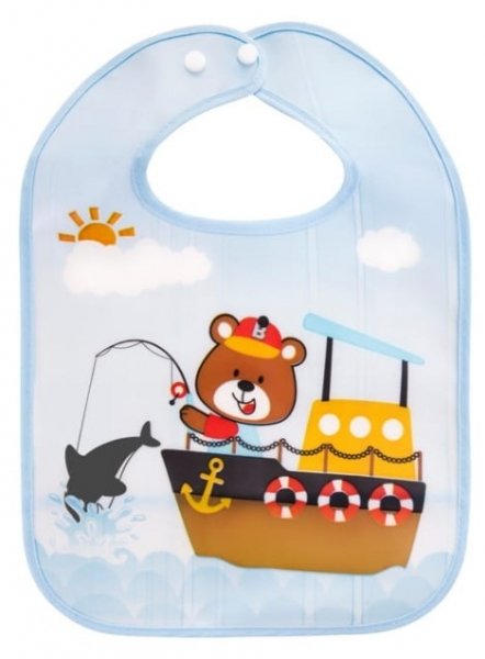 BocioLand Plastový bryndáček Medvídek Rybář, modrý