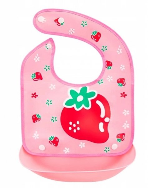 BocioLand Silikonový bryndáček s kapsičkou Jahůdka, růžová