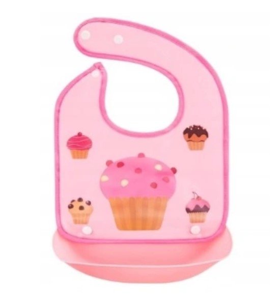 BocioLand Silikonový bryndáček s kapsičkou Muffin, ružový