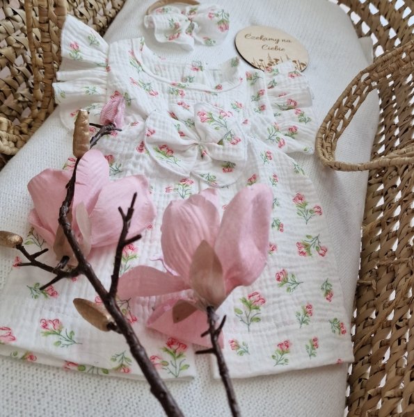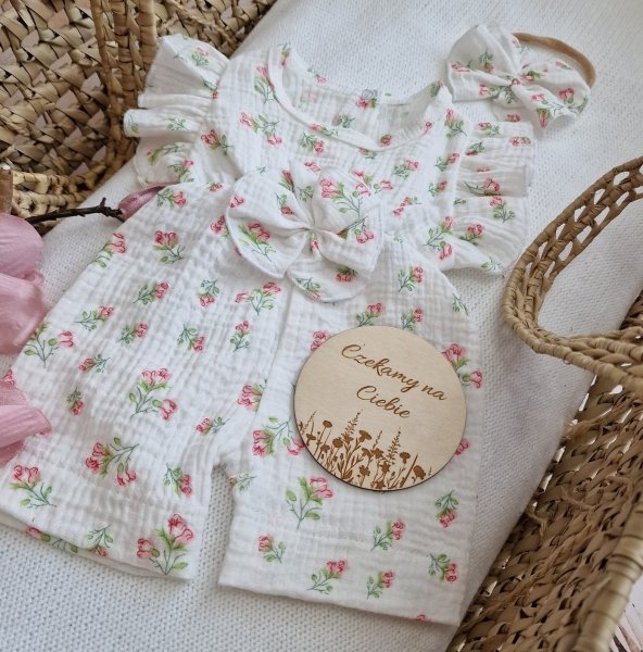 Body s nohavičkami kr. rukáv + čelenka, mušelín, 2D sada, Z&Z