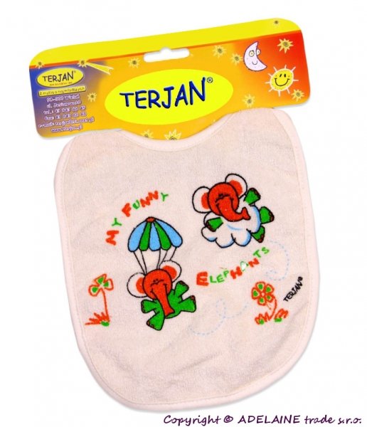 Bavlněný bryndáček Terjan s obrázkem.