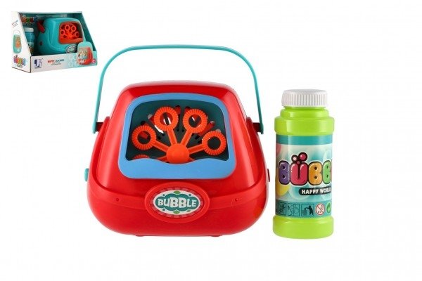 Bublifuk stroj plast 13x11cm na baterie + náplň 2 barvy v krabičce 21x15x11cm