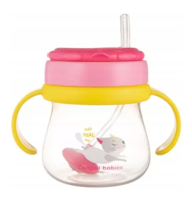 Canpol babies Hrníček sportovní se slámkou a závažím 250 ml, kočička - růžová