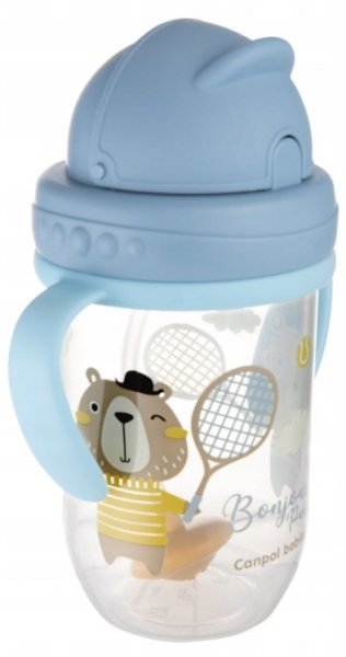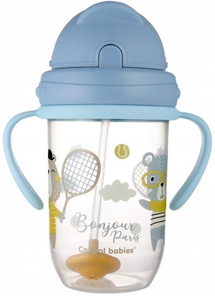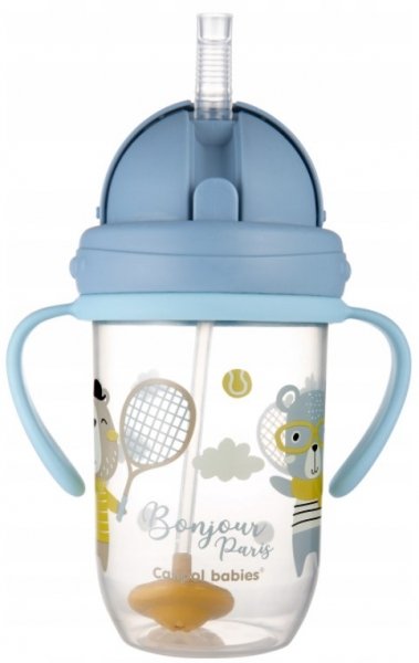 Canpol babies Nevylévací hrníček se slámkou a závažím Bonjour Paris - modrý, 270 ml