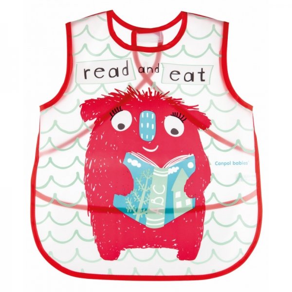 Canpol babies Plastový bryndák/zástěrka s kapsičkou Monsters - červená