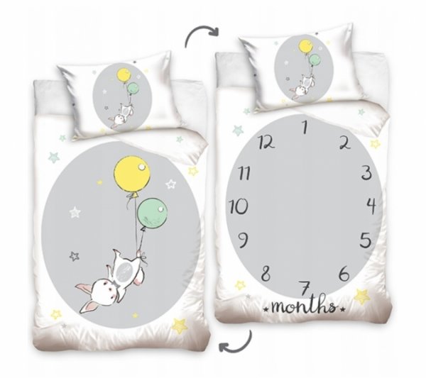 Carbotex Dětské bavlněné povlečení Bunny and Clock, 135x100 cm, šedé - 135x100
