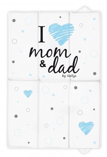 Cestovní přebalovací podložka, měkká, I Love, Nellys, 60x40cm, bílá/modrá