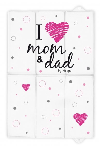 Cestovní přebalovací podložka, měkká, I Love, Nellys, 60x40cm, bílá/růžová