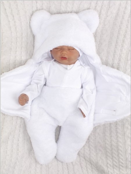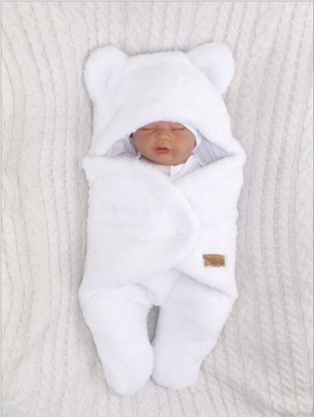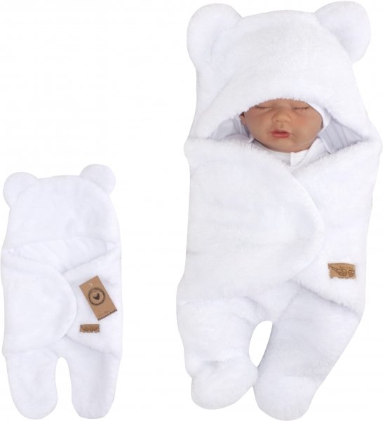 Chlupáčková zavinovačka s kapucí a nožičkama, Z&Z Medvídek, bílá