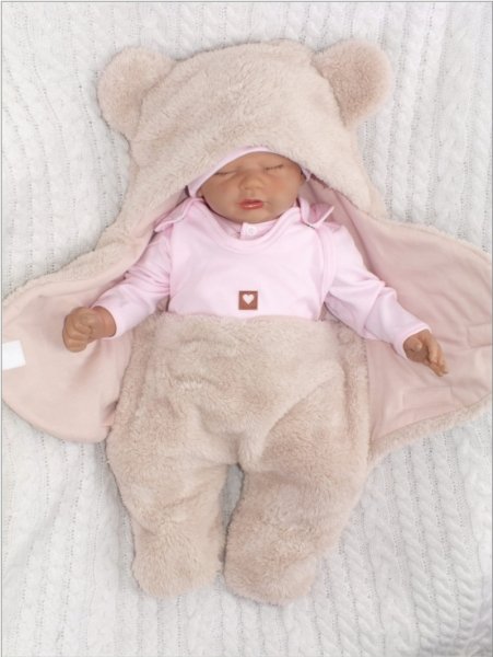 Chlupáčková zavinovačka s kapucí a nožičkama, Z&Z Medvídek, pudrově růžová