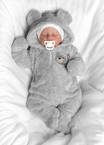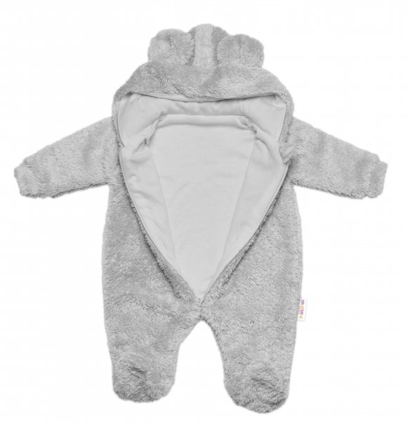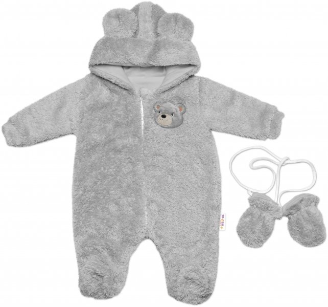 Chlupáčkový overal Luna s kapucí + rukavičky, Baby Nellys, Medvídek, sv. šedý, vel. 74/80 - 74-80 (9-12m)