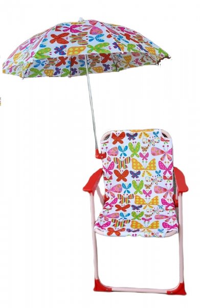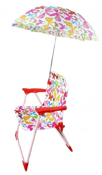 Barevná campingová židlička s deštníkem s oblíbeným pohádkovým motivem. Lehká, skládací, vhodná na cestování, do přírody i na zahradu. Židlička má dvě područky, zádovou opěrku, která poskytuje pohodlné sezení a deštník, který chrání dítě před sluncem.