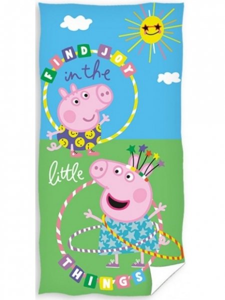 Dětská plážová osuška s motivem oblíbené postavičky prasátka Pepiny .Vyrobeno z vysoce kvalitní bavlny, která dokonale saje vodu. Měkké a jemné. Ideální k bazénu, na pláž a na každodenní použití. Jedinečný, poutavý vzor s motivem zvířátek, které děti milují.