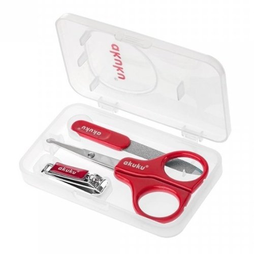 Sada obsahuje nůžky, pilník a kleštičky na nehty.