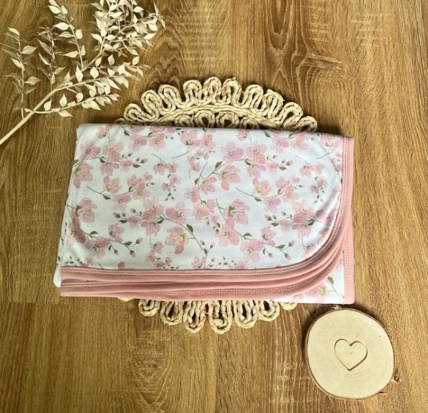 Dětská oboustranná bavlněná deka, Mamatti 80 x 90 cm, Květy višní, smetanovo/pudrová