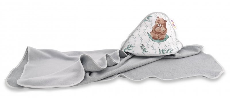 Dětská osuška s kapucí Baby Nellys, LULU natural, 100 x 100 cm, šedá