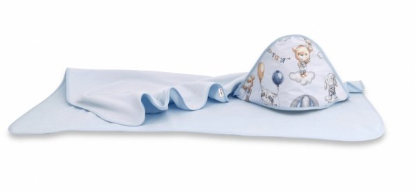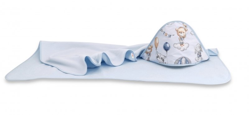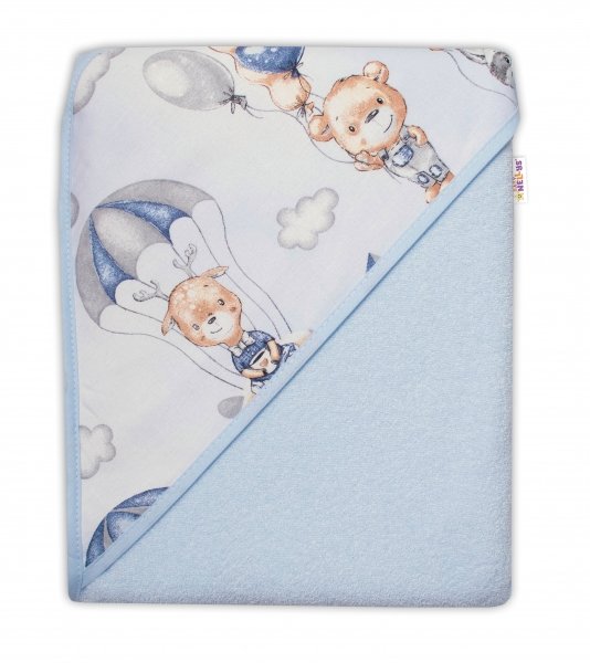 Dětská termoosuška s kapucí Baby Nellys, Létající zvířátka, 100 x 100 cm, modrá
