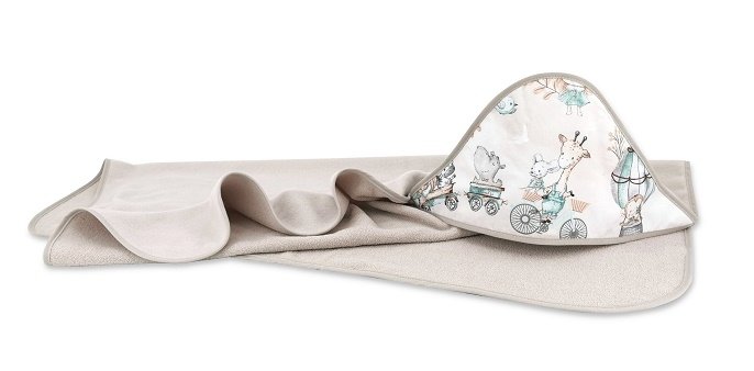 Dětská termoosuška s kapucí, ZOO na cestách, 100 x 100 cm, mátová/cappuccino