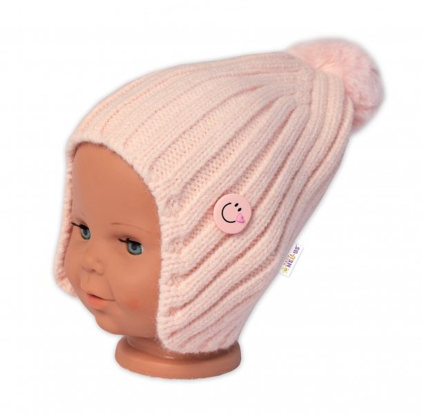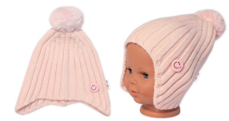 Dětská zimní čepice s bambulí Smile, Baby Nellys - pudrově růžová, vel. 48-54 cm - 98-104 (2-4r)