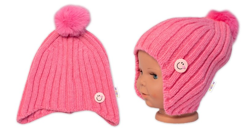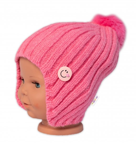 Dětská zimní čepice s bambulí Smile, Baby Nellys - růžová, vel. 48-54 cm - 98-104 (2-4r)