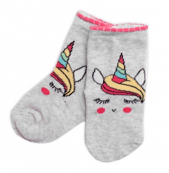 Dětské bavlněné ponožky Jednorožec - šedé - 15-18