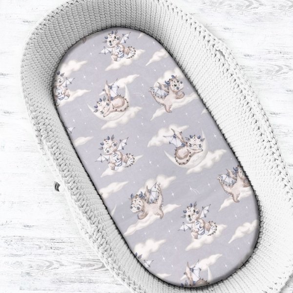 Dětské bavlněné prostěradlo do kočárku, koše, Dráček Mráček - modrá/šedá - 90x40