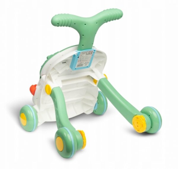 Vzdělávací hračka z řady TOYZ Activity, ideální pro dítě, které již začalo dělat první krůčky. Díky kombinaci několika možností v jedné hračce zabaví vaše batole na mnoho hodin. Dá se použít jako odstrkovadlo nebo interaktivní stůl se spoustou atrakcí. Čas zpříjemní košík, do kterého může vložit 3 plastové míčky s chrastítkem, bateriové a odnímatelné piano ve tvaru kraba, točící se ozubená kola a mnoho dalších překvapení. Přední panel lze sejmout a proměnit v hrací stolek.