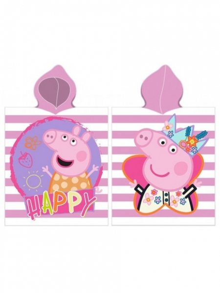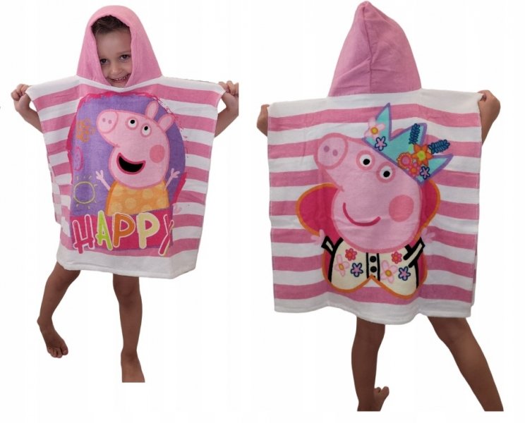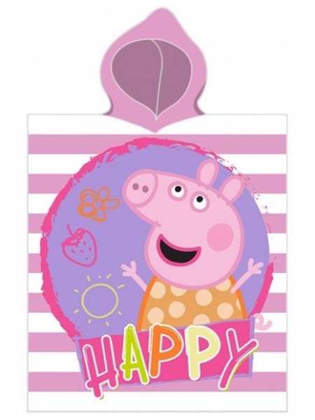 Dětské pončo s kapucí, bavlna 55x110 cm, Prasátko Pepina Carbotex - růžové